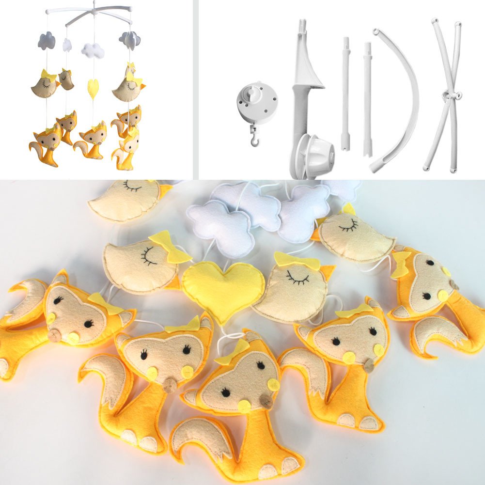 Handmade Baby Crib Mobile Animal Baby Nursery Mobile Toy Hanging Bed Decor Boys Girls Baby Shower Gift; Yellow Fox and Birds Handmade Baby Crib Mobile Animal Baby Nursery Mobile Toy Hanging Bed Decor Boys Girls Baby Shower Gift; Yellow Fox and Birds