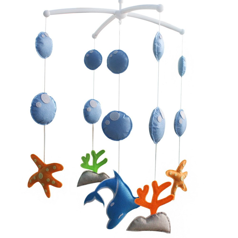 Starfish and Coral Baby Crib Mobile Nursery Decor Musical Crib Mobile for Girls Boys Gift Baby Mobile; Underwater World