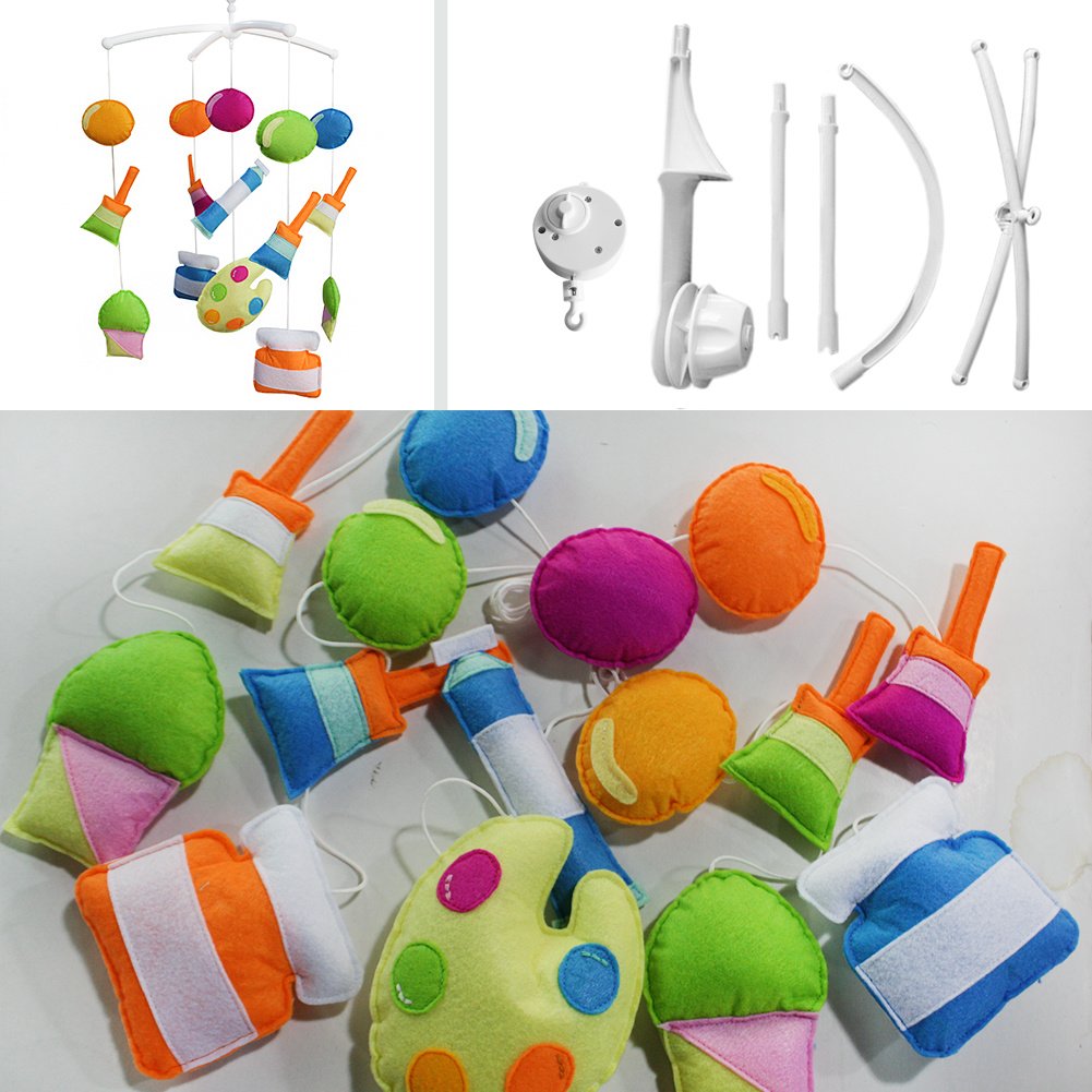 3.Each package contains a baby crib mobile holder arm bracket, a Wind-up Music Box and hanging non-woven fabric toys.