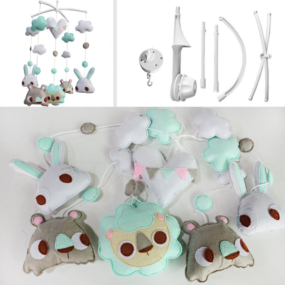 White Blue Tiger Rabbit Bear Handmade Baby Crib Mobile Animal Hanging Musical Mobile Infant Nursery Room Toy Decor