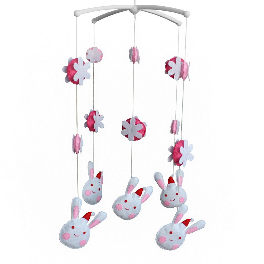 Baby Musical Mobile White Rabbit Flower Nursery Room Decor Baby Mobile for Crib Hanging Toy Baby Musical Mobile White Rabbit Flower Nursery Room Decor Baby Mobile for Crib Hanging Toy