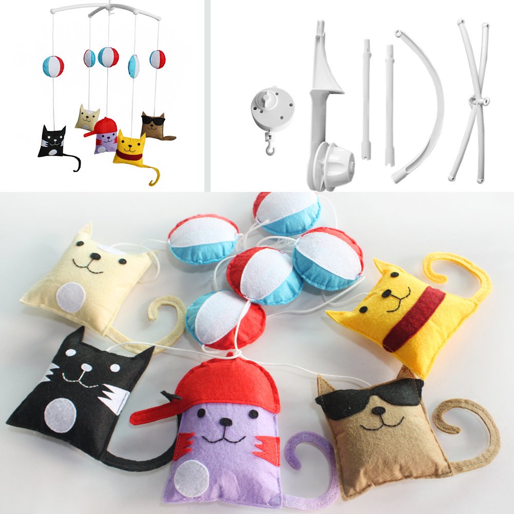 Home > Handmade Baby Crib Mobile Kids Room Decor Baby Musical Mobile Cats and Balls