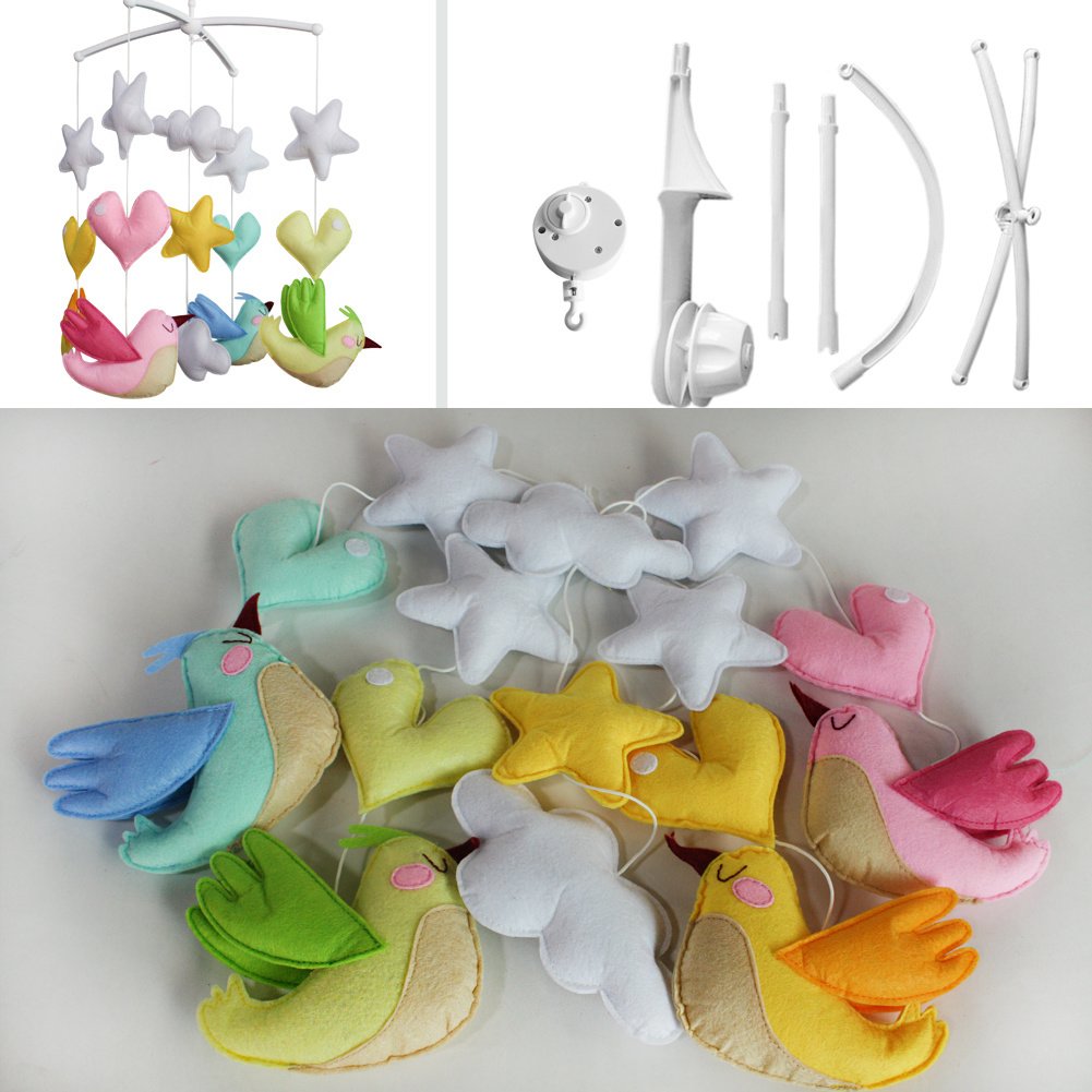 Home > Green Blue Pink Birds Yellow Stars Hearts Handmade Baby Crib Mobile Infant Musical Mobile Boys Girls Nursery Hanging Toy