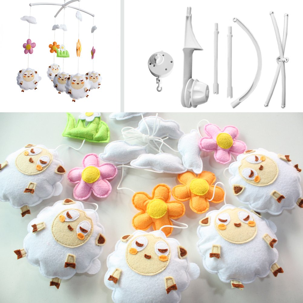 Handmade Baby Crib Mobile Baby Musical Mobile Nursery Room Hanging Animal Toy Decor; White Sheep Handmade Baby Crib Mobile Baby Musical Mobile Nursery Room Hanging Animal Toy Decor; White Sheep