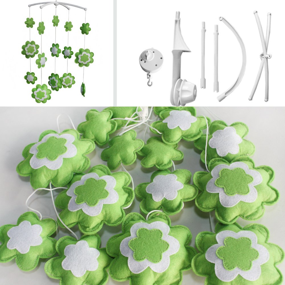 Baby Crib Mobile Green Flowers Handmade Musical Mobile Baby Shower Gift Nursery Decor Baby Crib Mobile Green Flowers Handmade Musical Mobile Baby Shower Gift Nursery Decor
