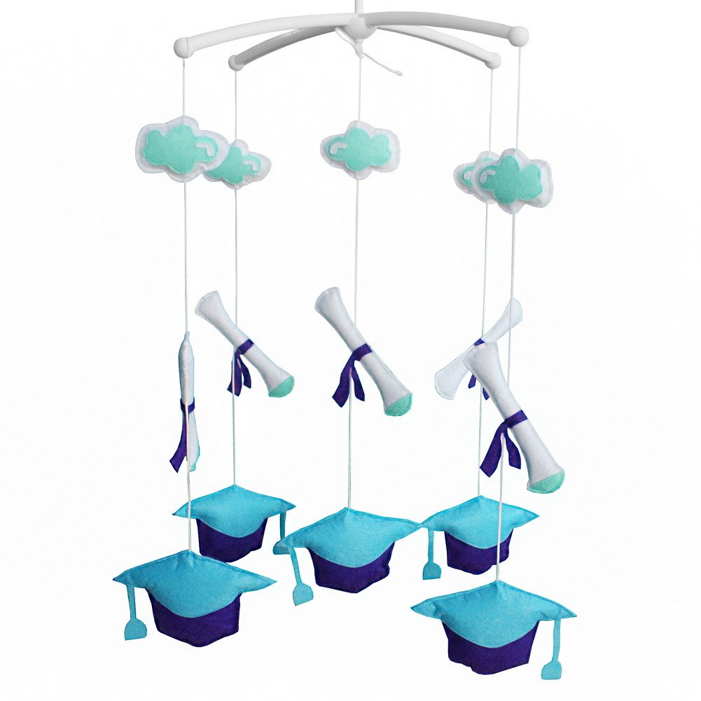 Handmade Blue Trencher Cap Baby Crib Mobile Nursery Room Decor Musical Mobile Crib Toy for Girls Boys