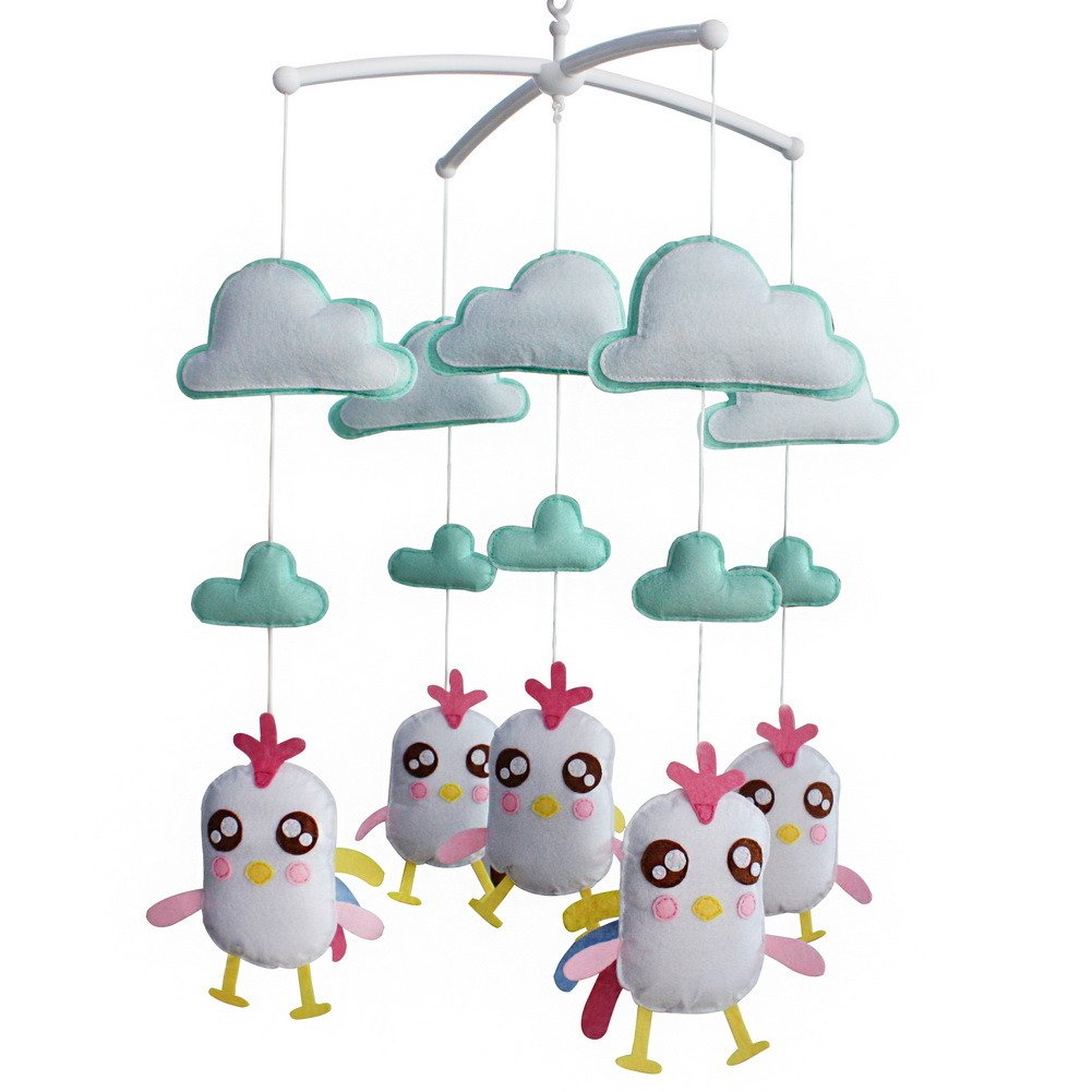 White Chicken Handmade Baby Crib Mobile Infant Musical Mobile Boys Girls Nursery Hanging Toy White Chicken Handmade Baby Crib Mobile Infant Musical Mobile Boys Girls Nursery Hanging Toy