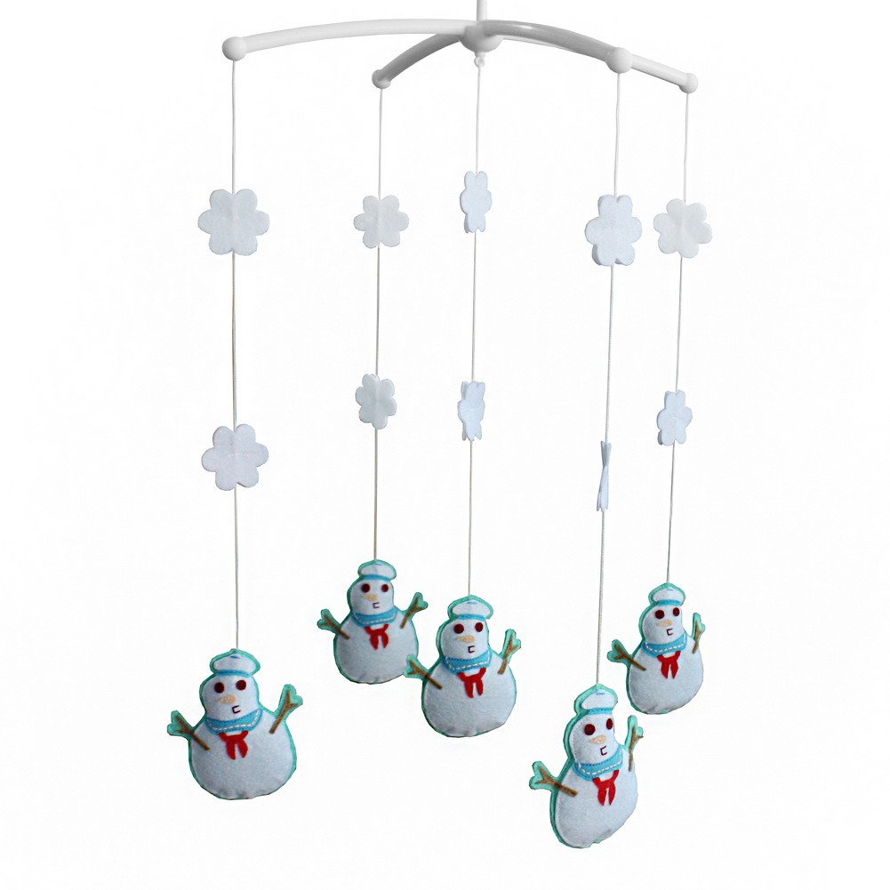 White Snowman Snowflake Infant Room Hanging Musical Mobile Crib Toy Baby Crib Mobile Nursery Decor for Girls Boys