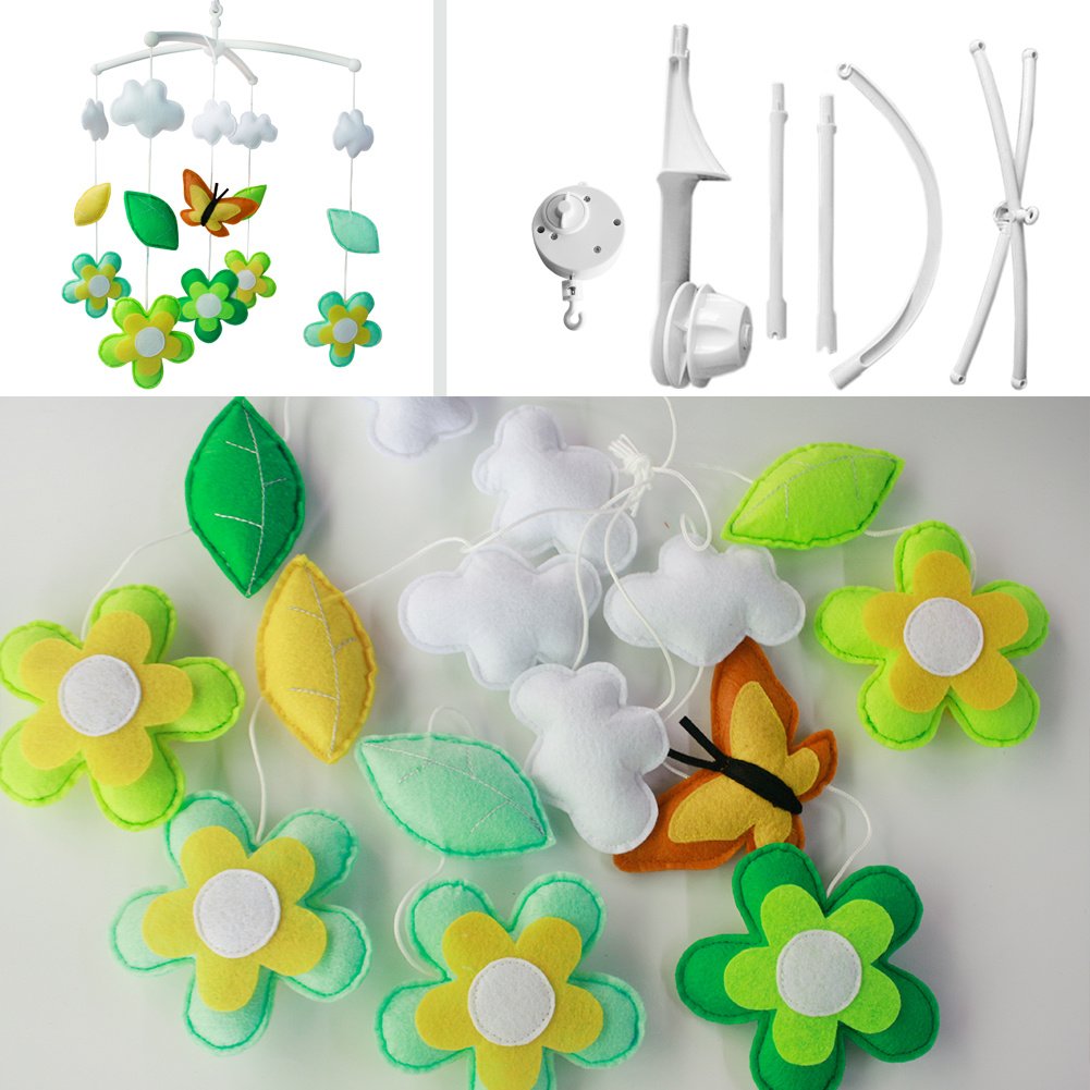 Butterfly and Green Flowers Handmade Baby Musical Crib Mobile Hanging Toy Gift Boys Girls Nursery Room Decor Butterfly and Green Flowers Handmade Baby Musical Crib Mobile Hanging Toy Gift Boys Girls Nursery Room Decor