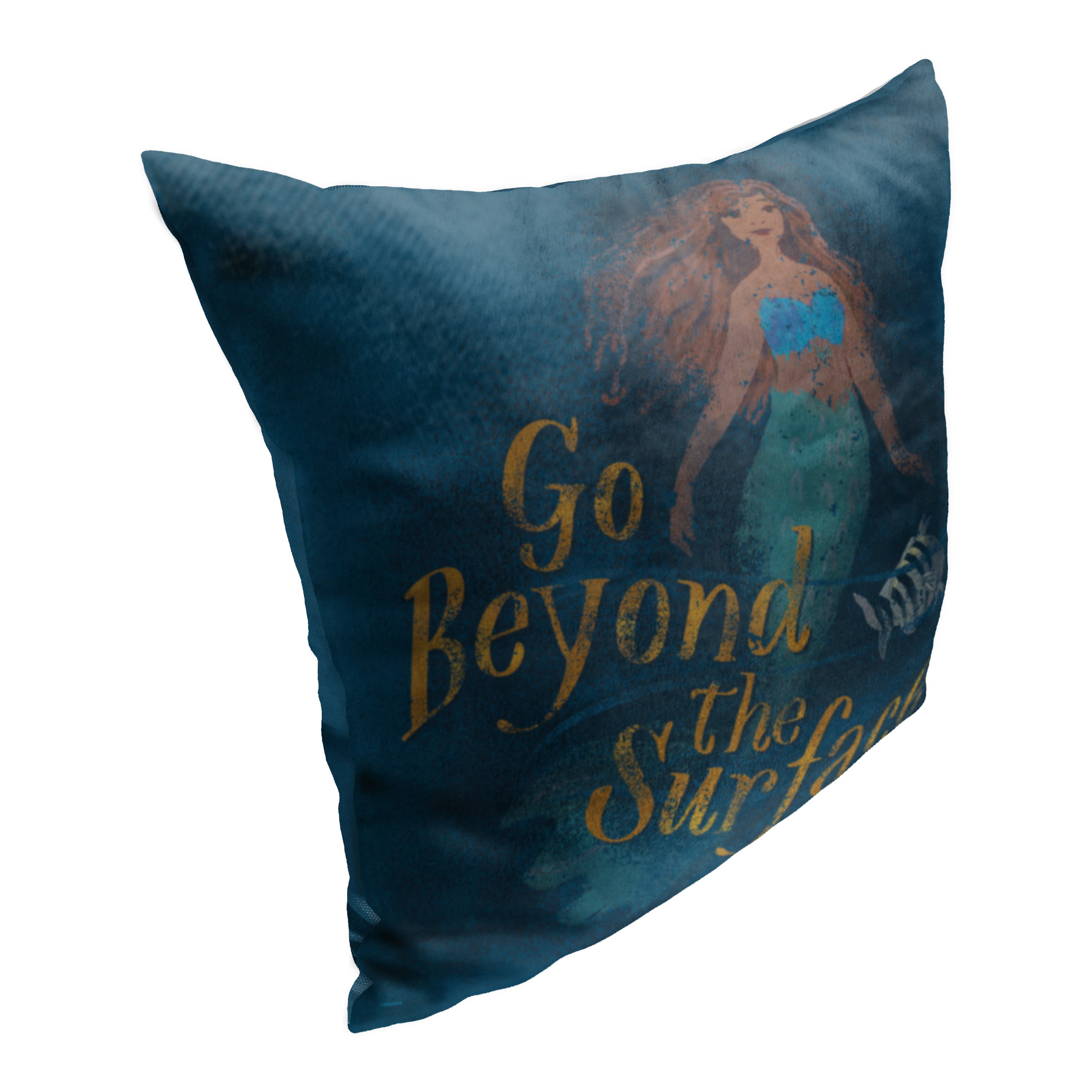 Bring some fun with elements of comfort and style to your home with this Disneys' Little Mermaid "Beyond the Surface" soft and luxurious pillow. Measuring 18"W x 18"L, it's the perfect size to add an extra layer of coziness to your couch, bed, or any area in your home. Made with 100% polyester, this pillow is designed to be incredibly soft and comfortable.