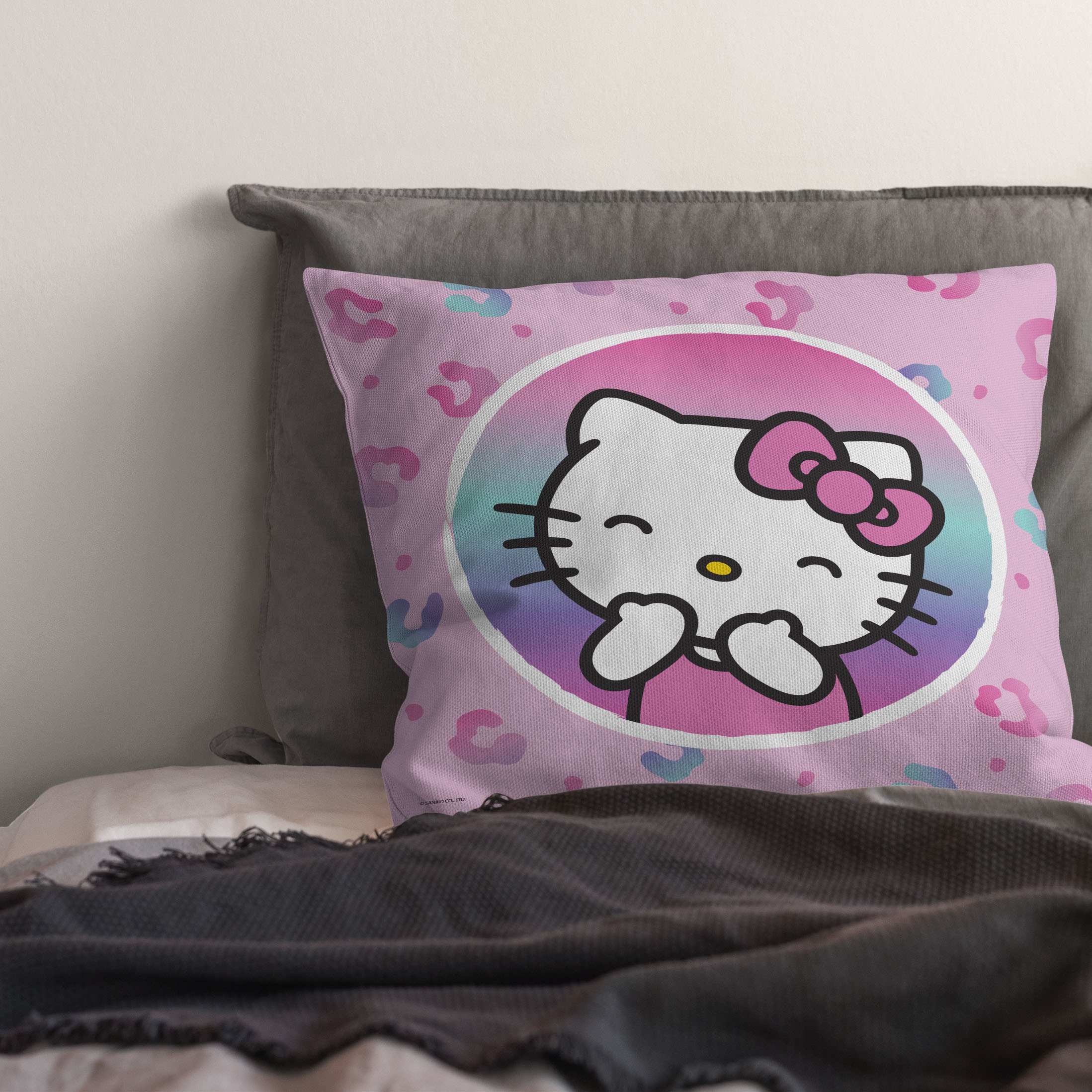 Get ready to be embraced by the unparalleled softness and comfort of this Sanrio's Hello Kitty "Giggle Kitten" Decorative Pillow. Its plush, huggable texture invites you to unwind, making it the perfect companion for your cozy moments. Whether you've been a lifelong Hello Kitty fan or simply appreciate the timeless appeal of this iconic character, this Hello Kitty Pillow is a delightful addition to your home.