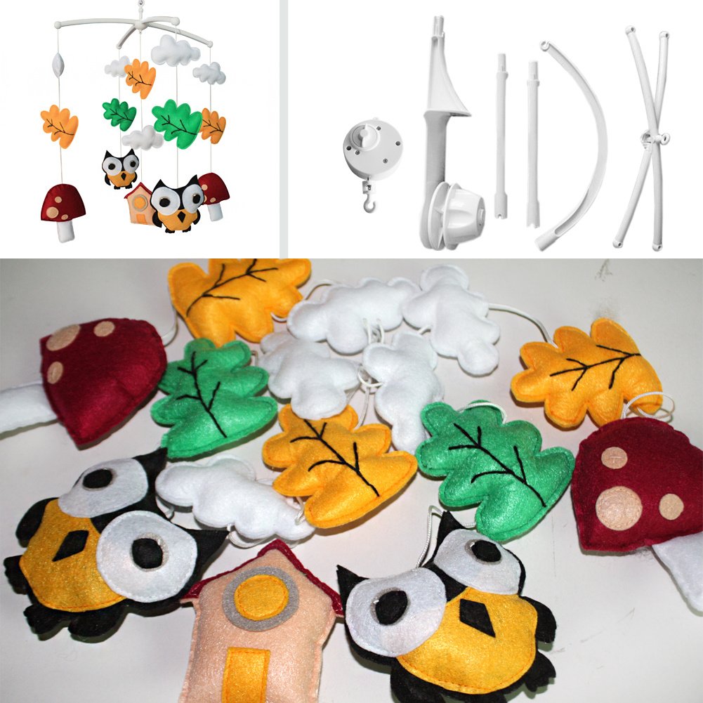 Baby Crib Mobile Owl Trees Mushroom House Handmade Musical Mobile Baby Shower Gift Nursery Decor