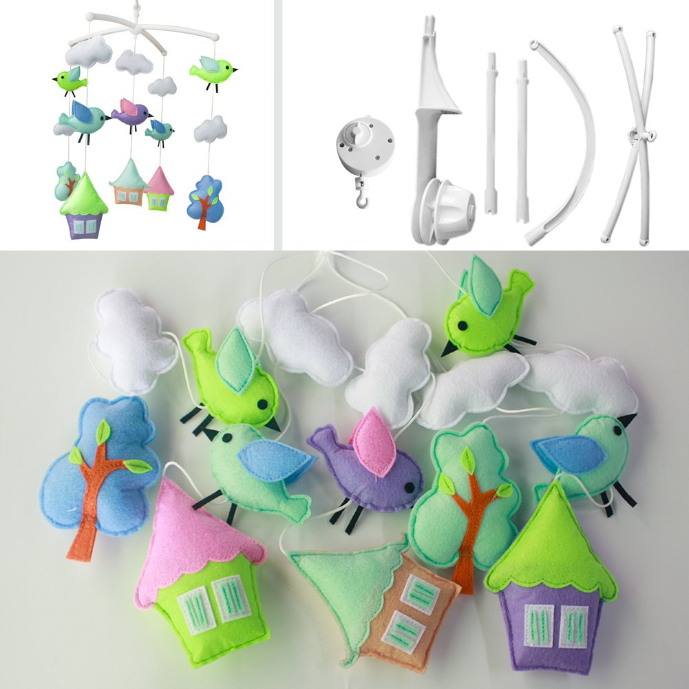 Colorful Birds House Trees Handmade Baby Musical Crib Mobile Boys Girls Nursery Hanging Mobile Toy Colorful Birds House Trees Handmade Baby Musical Crib Mobile Boys Girls Nursery Hanging Mobile Toy