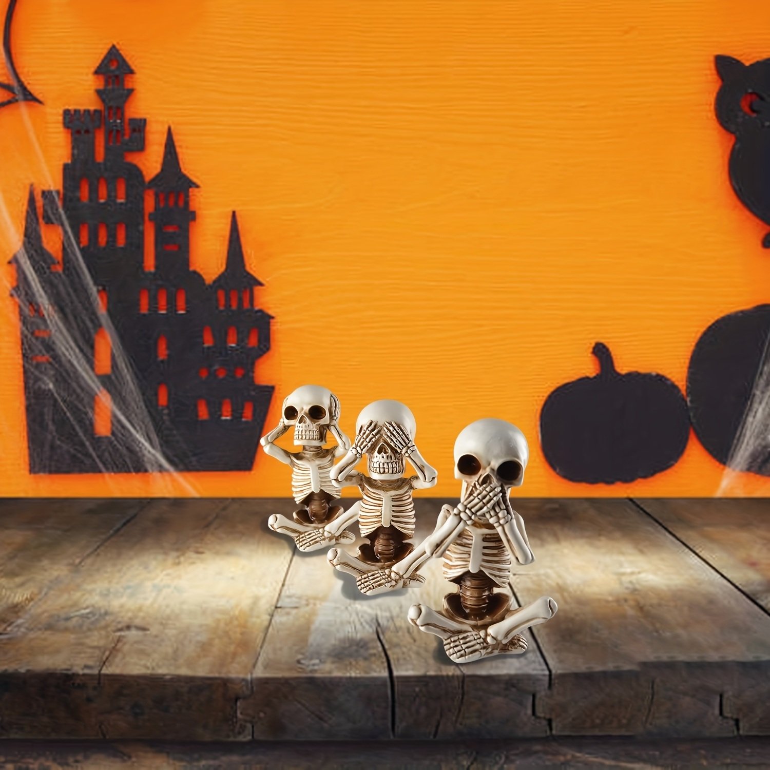 3pcs Skeletons Statue, Halloween Figurines Home Decorative Decor,Fantastic Ornaments Skull , Home Office Room Decor Birthday Halloween ,Indoor Home De