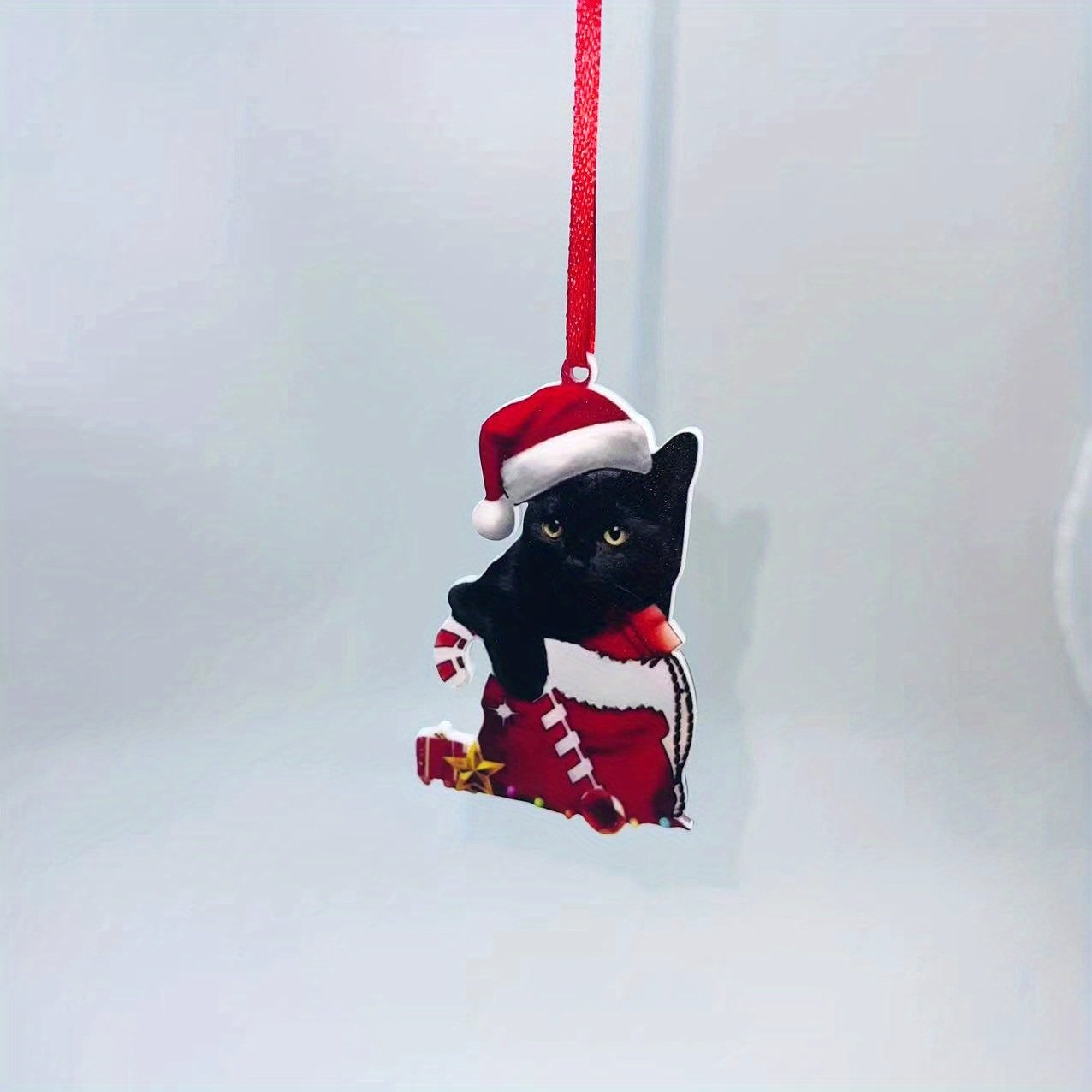 1pc,Acrylic Christmas Hat Cat,Unusual,Cheap,Scene Decoration,Room Decoration,Home Decoration, Indoor Decoration,Outdoor Decoration,Garden Decoration,
