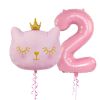 2pcs Cute Pink Number Cat Head Balloons Baby Shower Globos Kids Toy