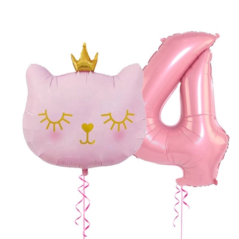 2pcs Cute Pink Number Cat Head Balloons Baby Shower Globos Kids Toy