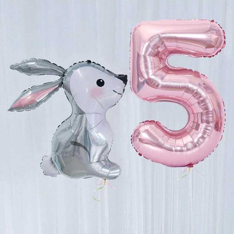2Pcs 40Inch Large Rose Gold Number Cut Jungle Gray Rabbit Balloons Baby Shower Globos Wedding Birthday Party Decoration Kid Toys