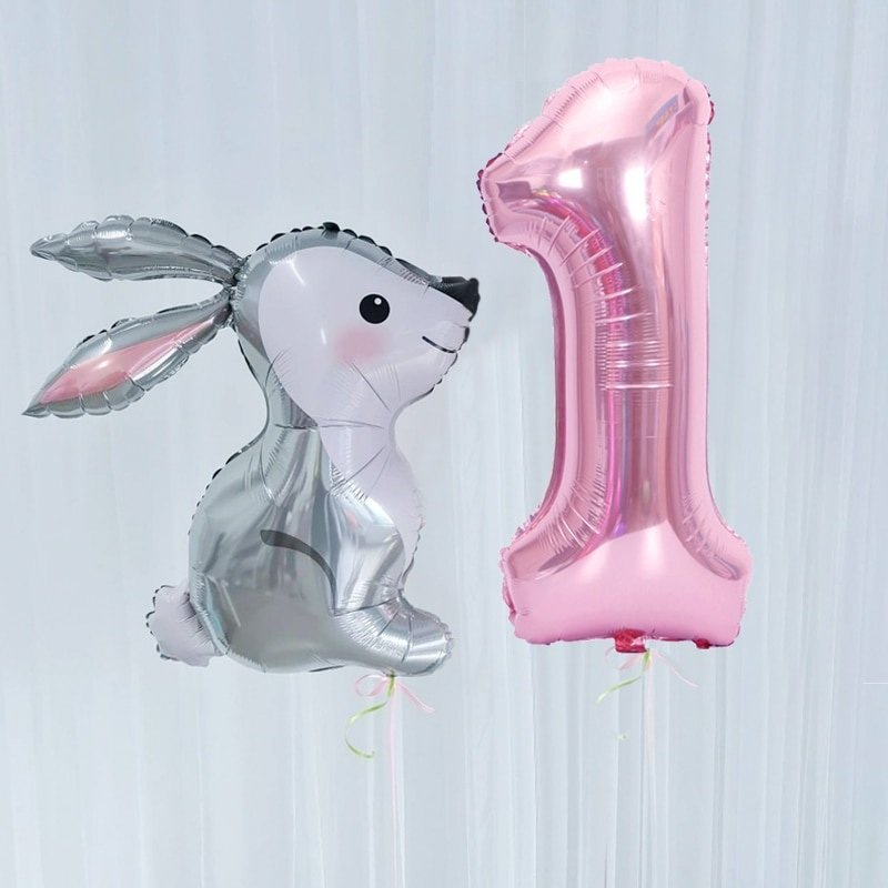 2Pcs 40Inch Large Rose Gold Number Cut Jungle Gray Rabbit Balloons Baby Shower Globos Wedding Birthday Party Decoration Kid Toys