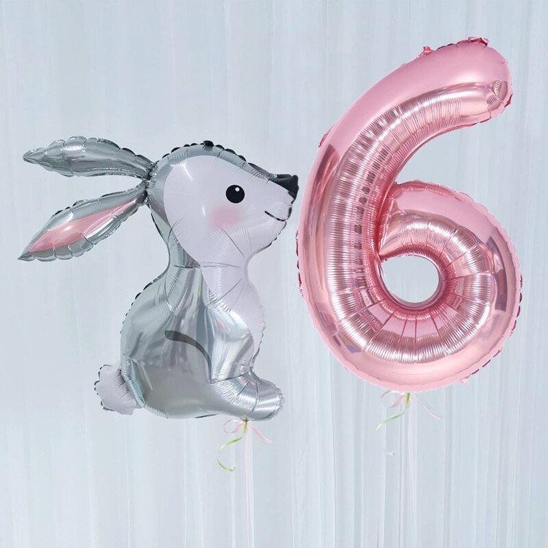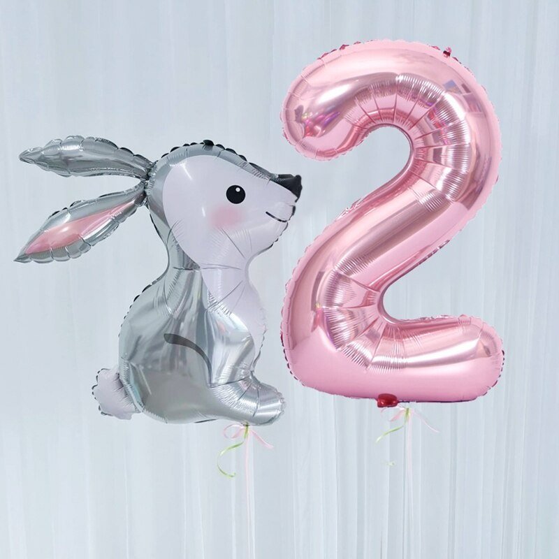 2Pcs 40Inch Large Rose Gold Number Cut Jungle Gray Rabbit Balloons Baby Shower Globos Wedding Birthday Party Decoration Kid Toys