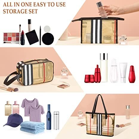 1.3 DIFFERENT SIZES:Contains one large toiletry bag, one medium makeup bag, and a small cosmetic bag. Different sizes make your need a bathroom, traveling and organizing. And It is also suitable for your daily life.
