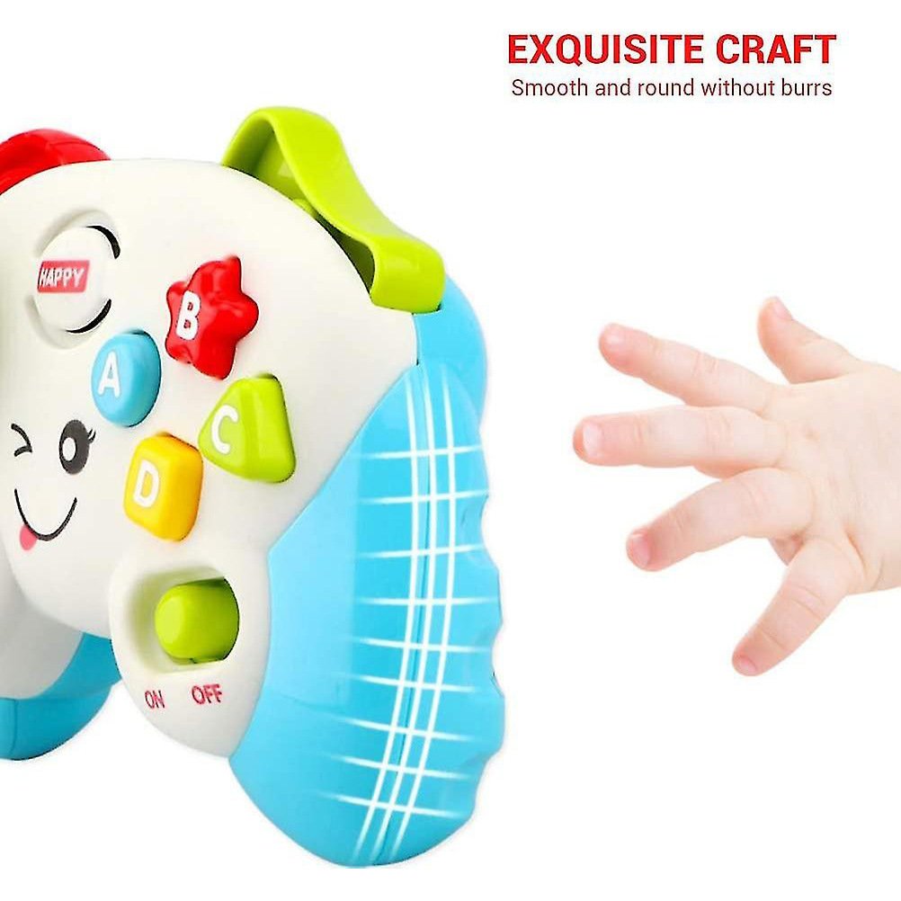 Get your little one into the gaming fun with this video game controller look alike with multicolored, light-up face.