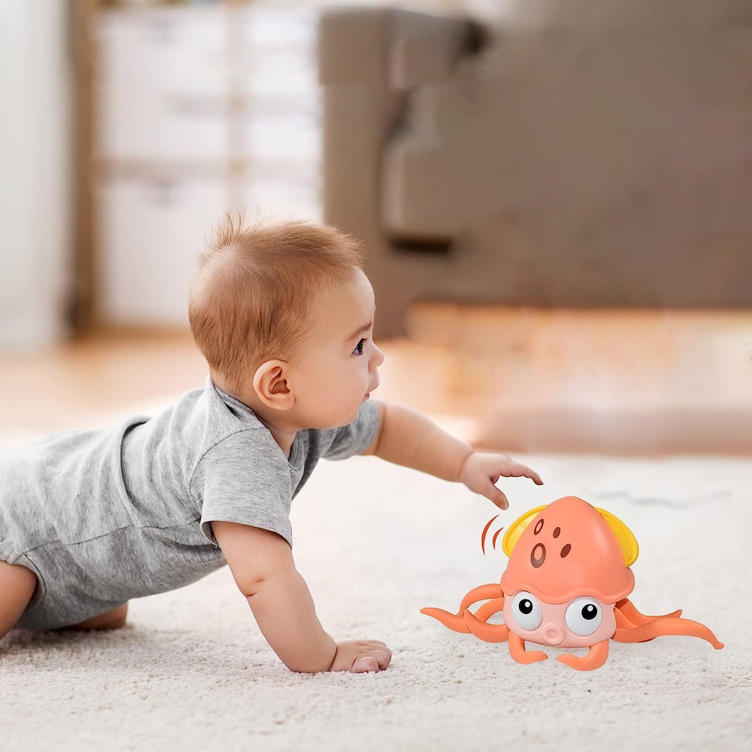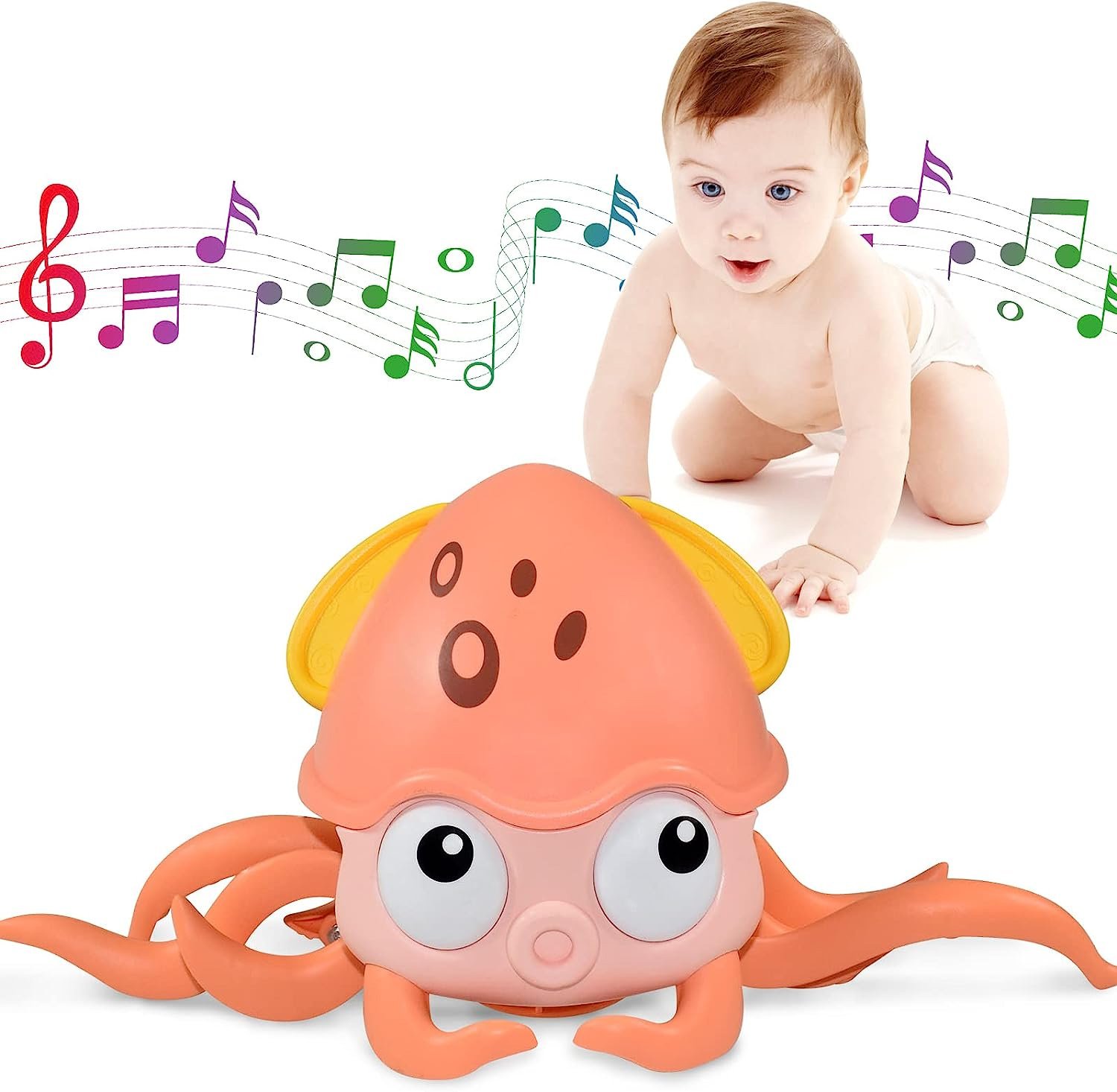 *Musical Octopus Toys*:Our crawling toy is designed as an octopus,looks cute and comical. Equipped with LED lighting and music playing during moving,stimulate children’s senses and encourage them to chase. An attractive and funny toy for your children.