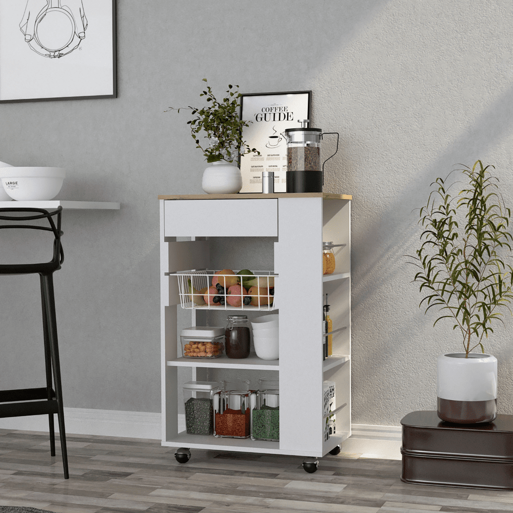 Kitchen Cart Sonex, One Drawer, Two Open Shelves, Four Casters, White / Light Oak Finish