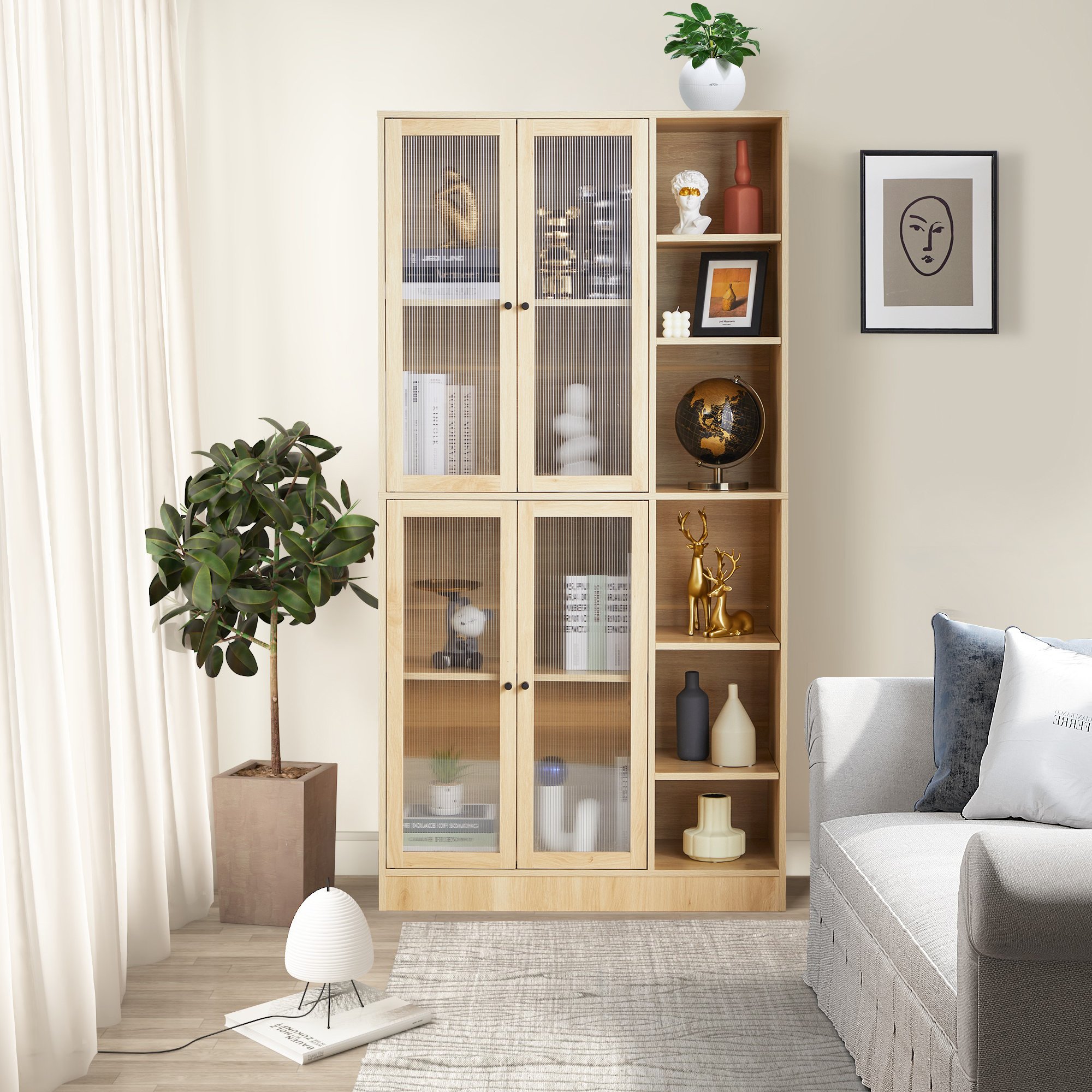 Six adjustable shelves divide the pantry into 10 interior compartments for kitchen utensils, cookbooks, dishes and condiments. Keep your belongings organized and dust-free behind 4 sun-panel cabinet doors. Additionally, the top of the cabinet can be used to place picture frames or vases. Overall Dimensions: 36.22"W x 15.75"D x 70.87"H.