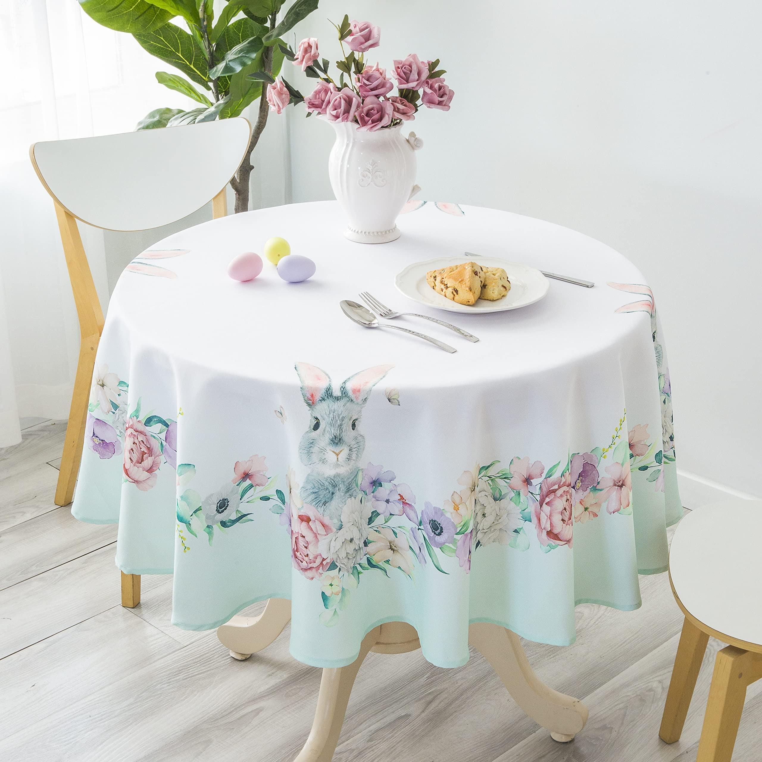 Watercolor Easter Bunny Round Tablecloth Non Iron Stain Resistant Table Cover Diameter 60 inch