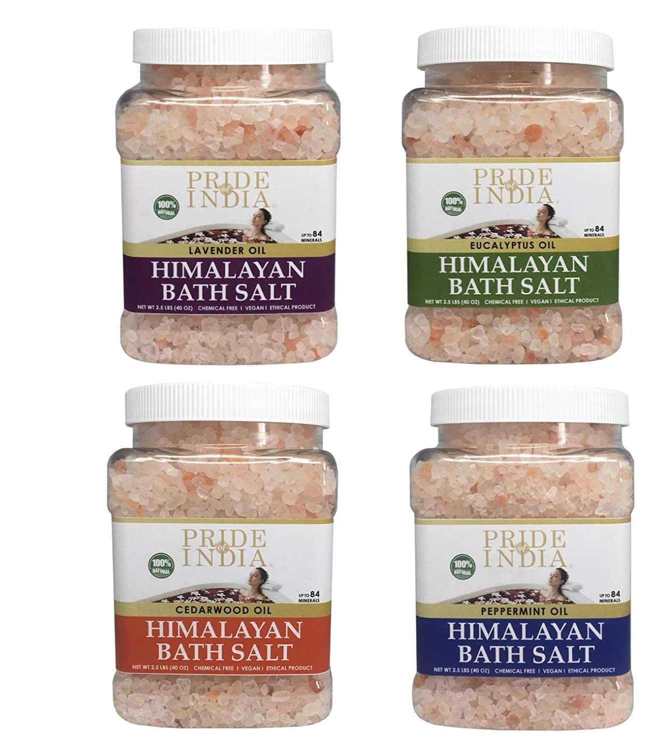 Pride of India incorporates organically-grown food and herbal products from India into our daily life. These all-natural ingredients help enhance the overall health of the human body. Pride of India is family owned and operated, and we manufacture our products in the USA. This Himalayan Pink Rock Salt is great for soaking in the bath or creating your own salt scrubs. Himalayan Pink Rock Salt is the purest form of salt on Earth as it does not undergo any artificial treatment or refining. The reddish-pink appearance of our salt proves its purity, and it contains up to 84 essential minerals that are quintessential for the human body. Combined with top quality therapeutic essential oils, our bathing salt reinvigorates your senses and revitalizes your body. Bath salts help your body relax and detox, in addition to soothing sore muscles and reducing tension. A bath with our salts is the perfect spa treatment for soothing muscle aches, detoxing the skin, and imparting a natural body aroma. To create the perfect salt bath, mix 2 to 3 cups of Himalayan bath salt with hot water in your bathtub. Swirl the salts around until they dissolve. Then, sit back and relax! If you want to create your own salt scrub, combine 1 teaspoon of pink Himalayan salt with your body or bath serum. Add some oil to attain a gel consistency. You can mix the bath salts with other essential oils to create the perfect blend of aroma and therapeutic properties for your body. Take some time for yourself, draw a bath, and naturally relax with these pink Himalayan bath salts.