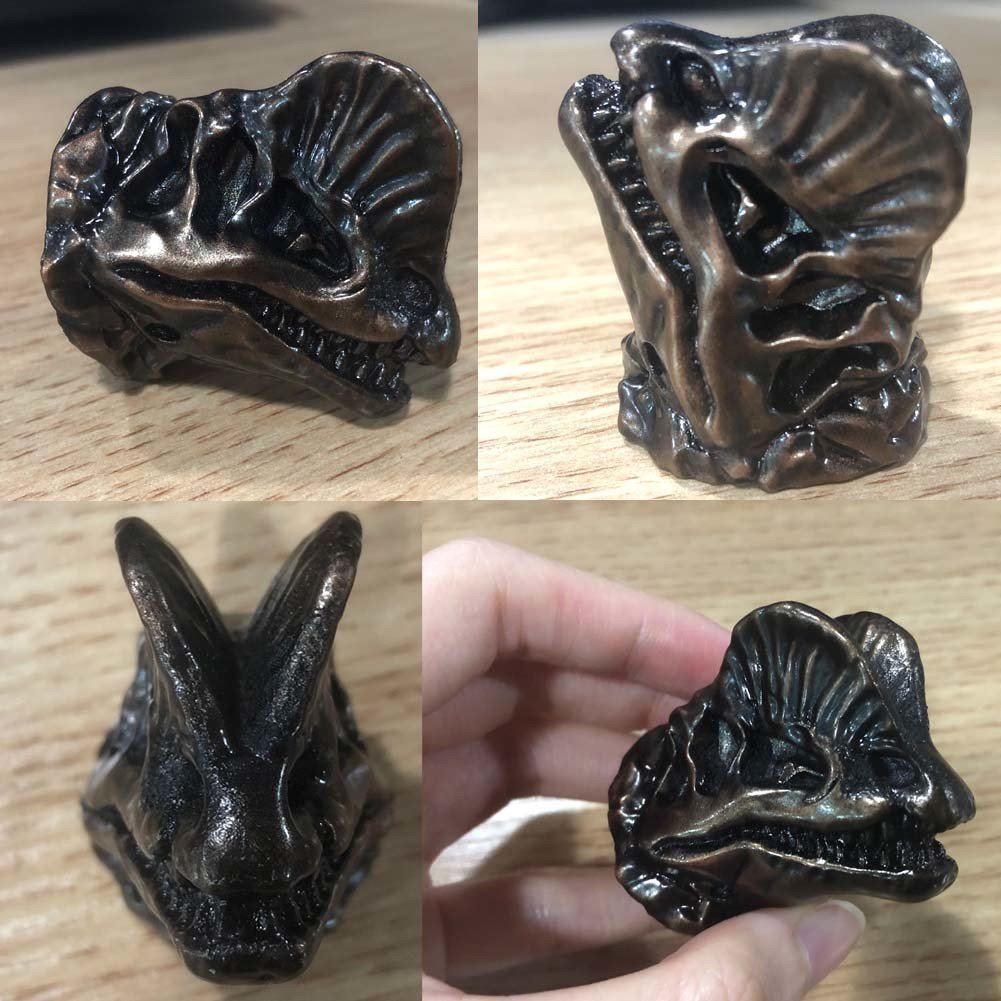 3 Pcs Simulation Dinosaur Drawer Knobs Resin Dilophosaurus Cabinet Handle Pulls, Bronze