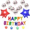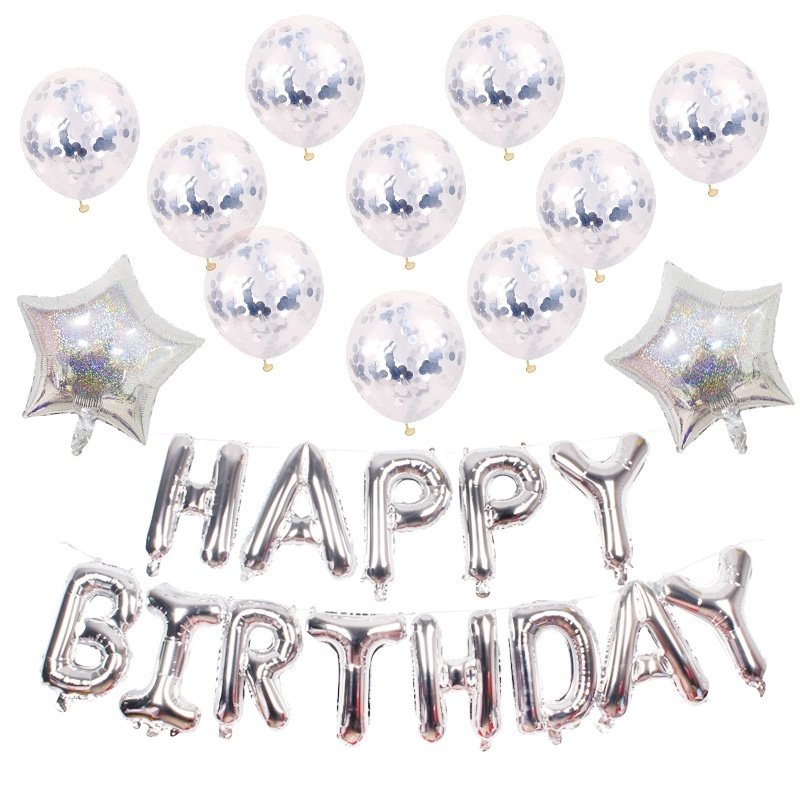 16-inch Hanging Birthday*1Paper balloon*10,18-inch Laser Pentagon Balloon*2Laser ribbon*1