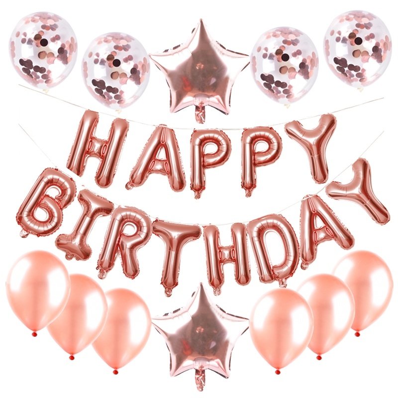 12inch latex balloon*612inch confetti balloon *418inch star foil balloon *2HAPPY BIRTHDAY foil balloon*1 Set