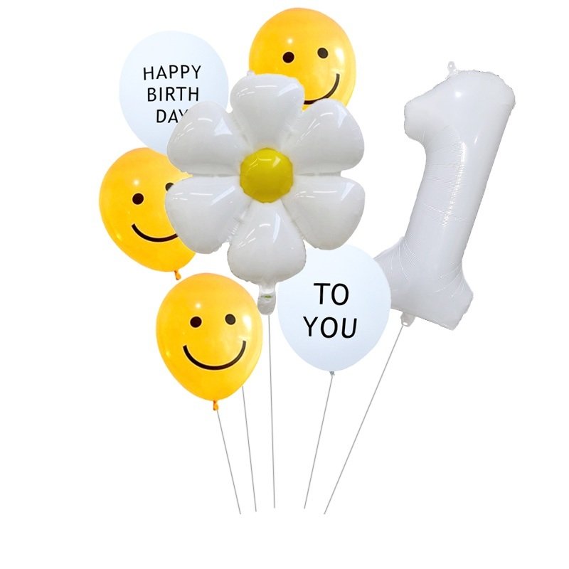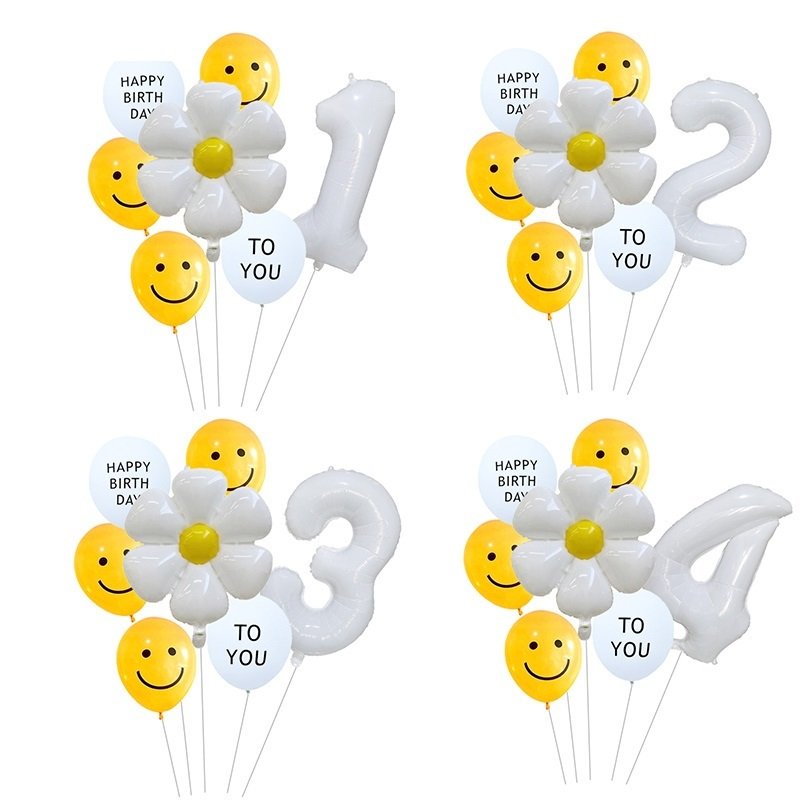 Home > 7pcs White Number Balloons Daisy Birthday Smile Face Latex Balloons Wedding Decoration Kids Birthday Party Supply