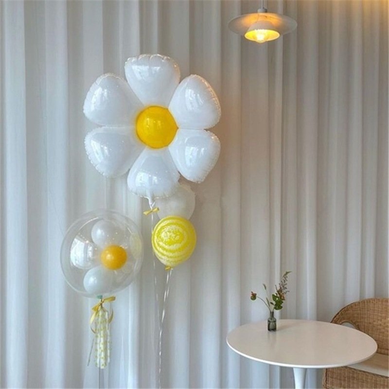>>Name: Smiley Daisy Flower Balloon Kit 32inch number balloon+1pcs 71*71cm flower balloon+5pcs latex balloon>>Color: As shown8pcs/set>>Material: Aluminium Foil/Latex>>Packing: OPP bag>>Applicable: birthday party, wedding decoration, event decoration, shop decoration, holiday decoration, children's toys, etc.