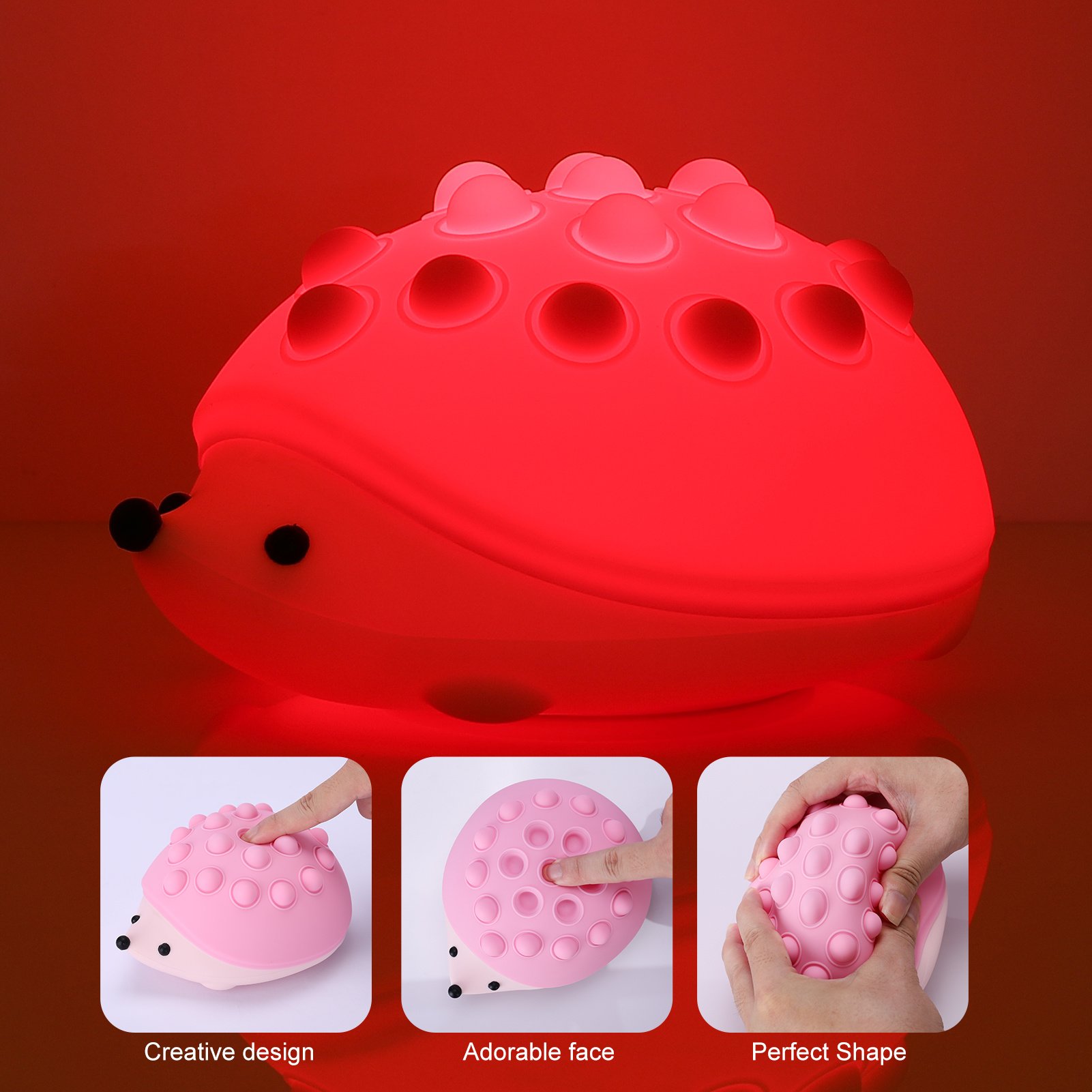 Cute Hedgehog Nightlights Colorful Lamp Dimmable Bedroom Decoration Led Lights Push Bubble Toys for Kids Creative Birthday Gift