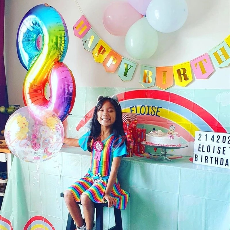 40inch New Rainbow Number Foil Balloons Happy Birthday Wedding Party Decoration Adult Colorful Unicorn Globos Kids Gift