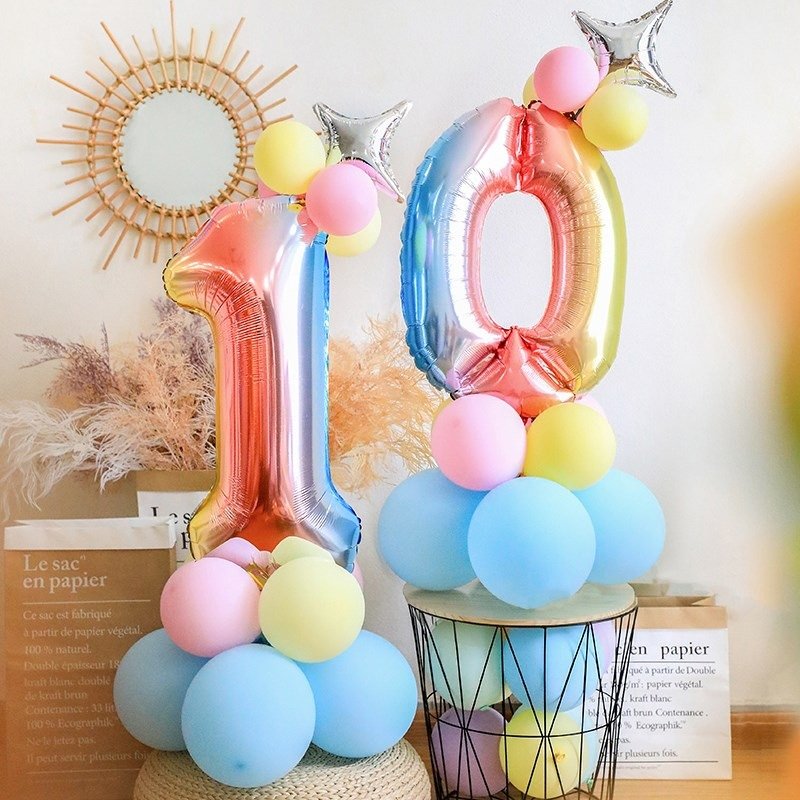32-inch Gradient Digital x110 inch tetragonal star x1Macaron latex balloon x12Strip latex balloon x1Dispensing x 10 points